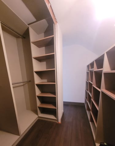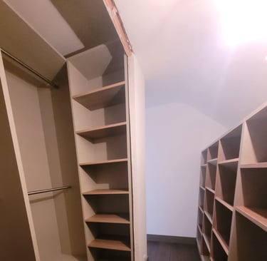 Dans notre menuiserie, nous concevons des dressings sur mesure, parfaitement ajustés à votre espace et adaptés à vos envies. Chaque projet est pensé pour allier esthétique, praticité et durabilité, en optimisant votre rangement tout en sublimant votre intérieur.