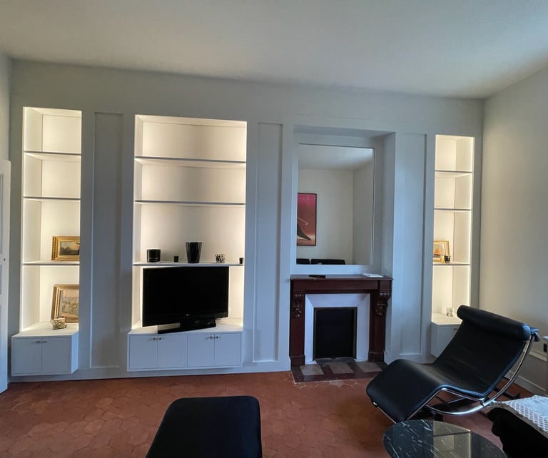 Nous concevons des meubles sur mesure parfaitement adaptés à votre intérieur. Chaque pièce est réalisée avec soin pour allier esthétique, durabilité et praticité, en s'harmonisant avec votre espace de vie ou de travail.
