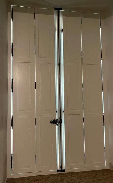 Fabrication sur mesure : création de volets en bois artisanaux dans notre atelier pour un rendu unique et intemporel. Pour les modèles en PVC ou aluminium, nous collaborons avec des fournisseurs spécialisés pour vous offrir des solutions adaptées à vos besoins et à votre style.
